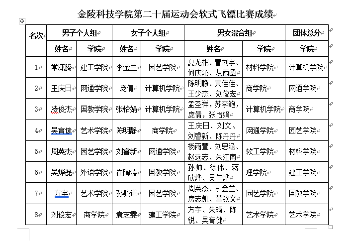 为全面贯彻落实中共中央办公厅、国务院办公厅印发《关于全面加强和改进新时代学校体育工作的意见》的文件精神,我校于2022年11月23日下午,在江宁校区体育馆成功举办了85588永利集团第二十届运动会软式飞镖比赛,全校17个学院共计124名学生参加了比赛,经过积分赛、淘汰和附加赛两个阶段的激烈争夺,最终决出了男子个人前8名,女子个人前8名,男女混合前8名,以及团体总分前8名(具体名单附后)。
