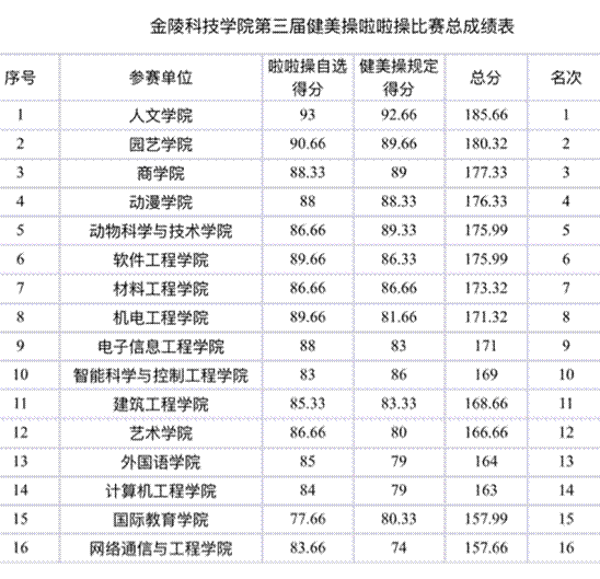 经过激烈的角逐,人文学院荣获本次比赛第一名的好成绩,园艺学院获得第二名,商学院获得第三名。具体名次如下: