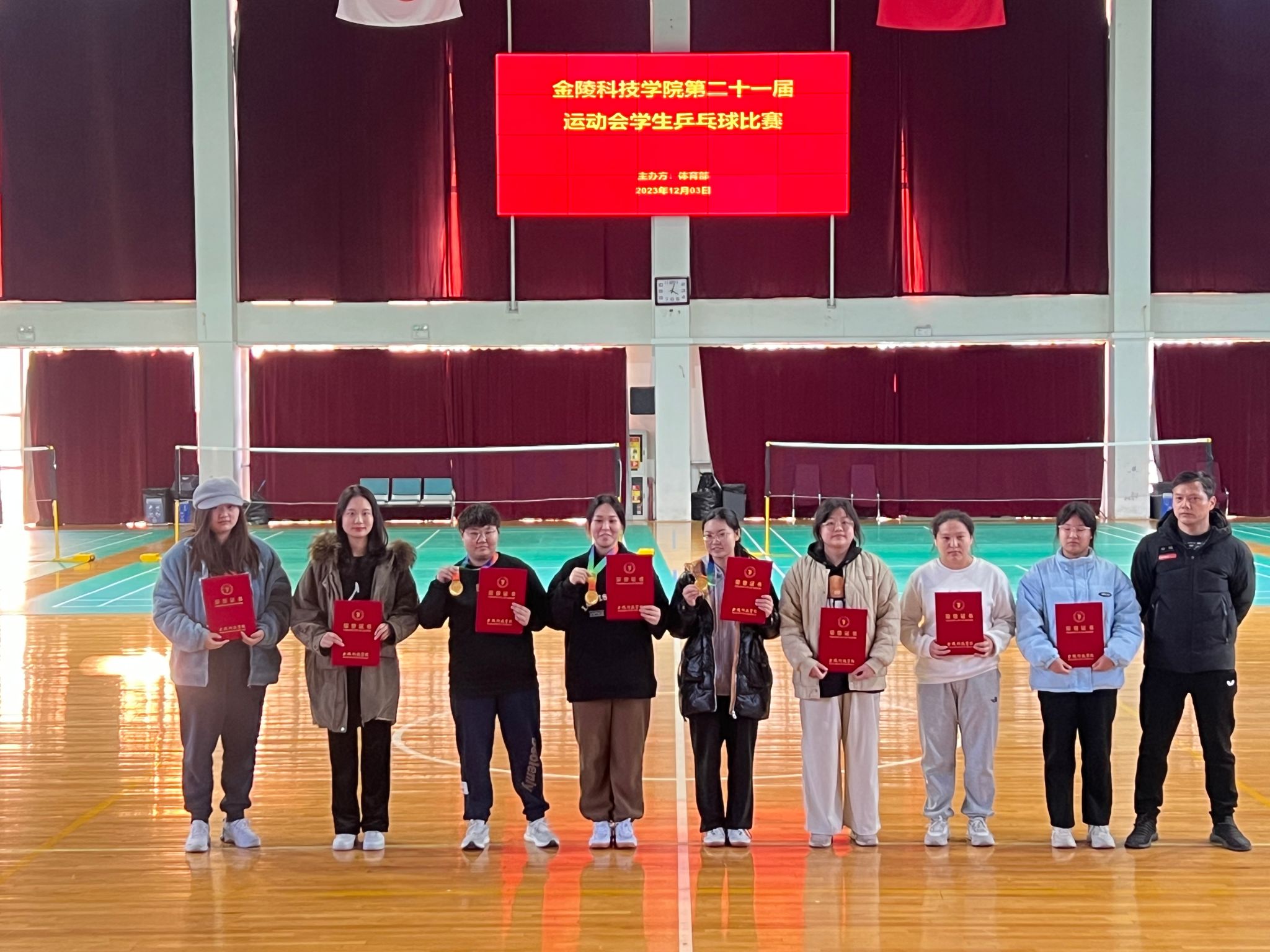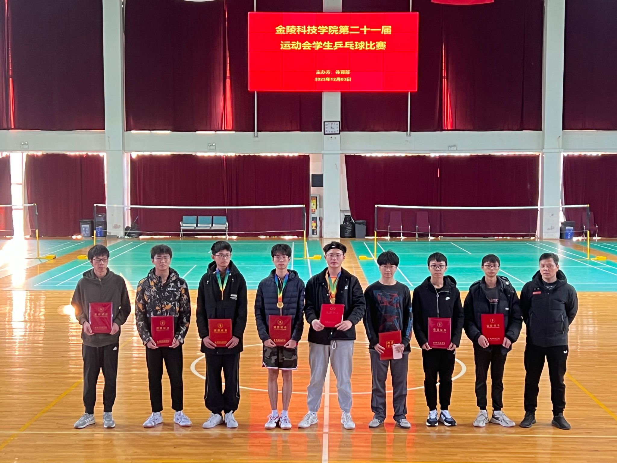 为全面贯彻落实中共中央办公厅、国务院办公厅印发《关于全面加强和改进新时代学校体育工作的意见》的文件精神,我校于12月3日,在江宁校区体育馆成功举办了85588永利集团第二十一届运动会学生乒乓球比赛,全校17个学院共计104名学生参加了比赛,经过积分赛、淘汰和附加赛两个阶段的激烈争夺,最终决出了男子个人前8名,女子个人前8名,男女混合团体前8名(具体名单附后)。