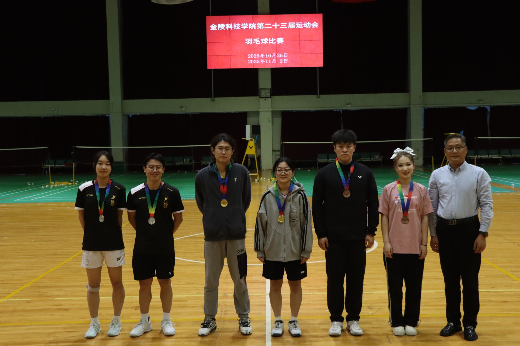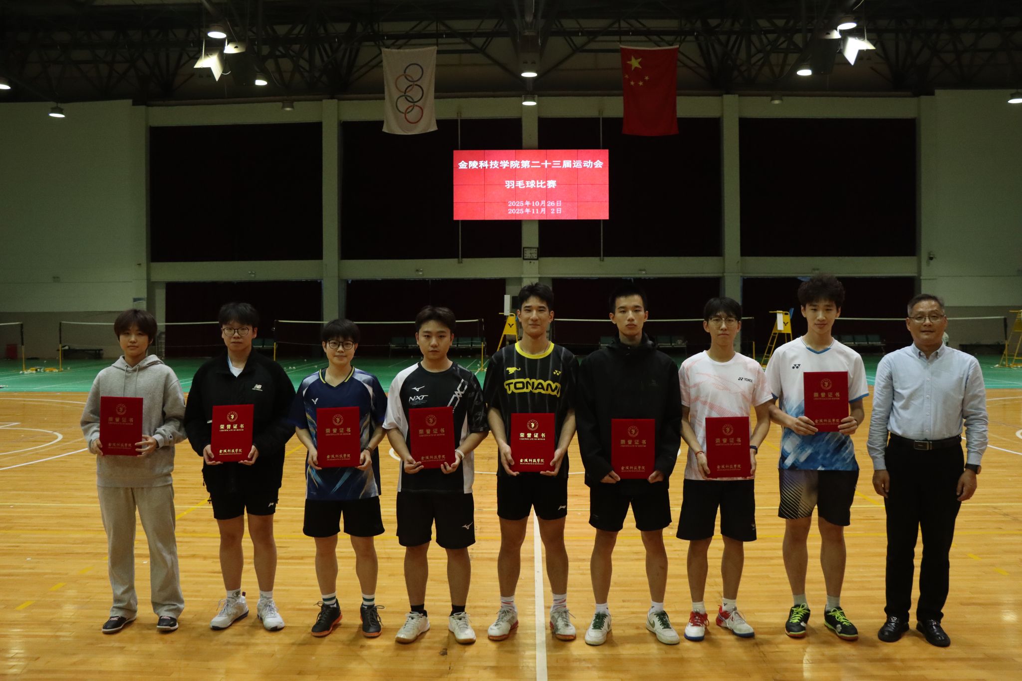 85588永利集团第二十三届运动会羽毛球比赛于2025年10月26、11月2日,在江宁校区体育馆隆重举行,比赛项目分为单项赛(男子单打、女子单打、混合双打)和混合团体赛,共有17支学院代表队253名运动员参加,部分留学生也参与到比赛之中。