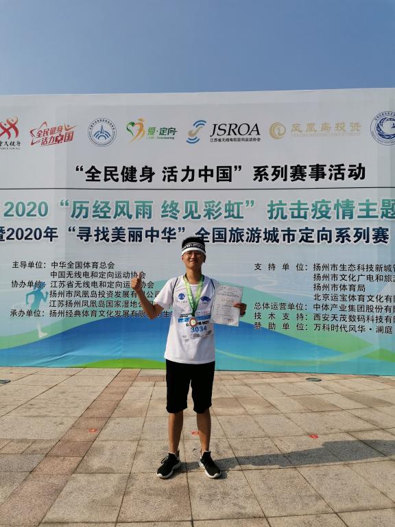 8月23日,由中华全国体育总会、中国无线电和定向运动协会主办、扬州生态科技新城承办、江苏省无线电和定向运动协会协办的2020年“历经风雨 终见彩虹”抗击疫情主题定向活动在扬州市生态科技新城凤凰岛国家湿地公园举行。在教练罗歆歆老师的带领下,我校定向越野校队的周清汉在公开男子组别中获得一等奖的佳绩,生动的展现了我校“运动成为习惯,让生命更加精彩”的体育理念。