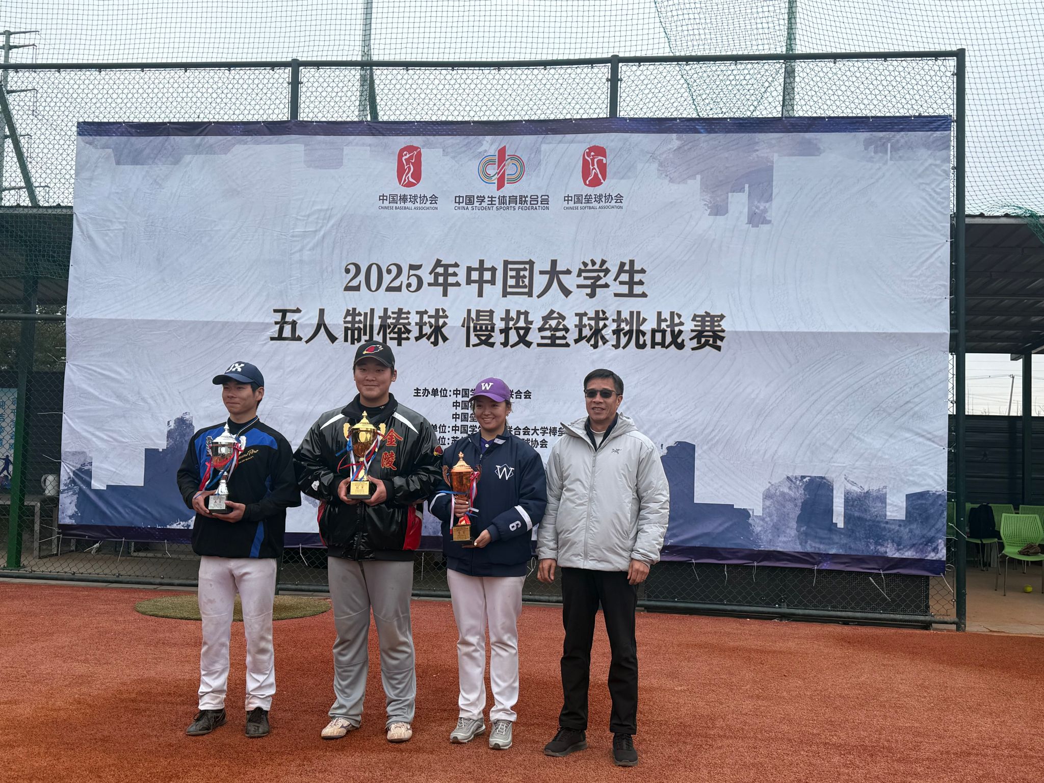 我校棒垒球队以四胜一平战绩勇夺慢投垒球项目甲组冠军,完成了大学生慢投垒球项目大满贯!朱辰荣获赛事“优秀教练员”称号,商学院的陈晨、网络安全学院的唐豪荣获“优秀运动员”称号!
