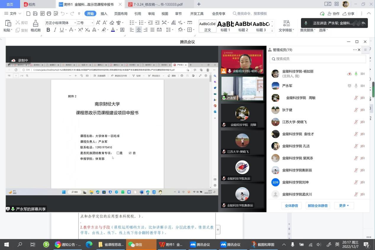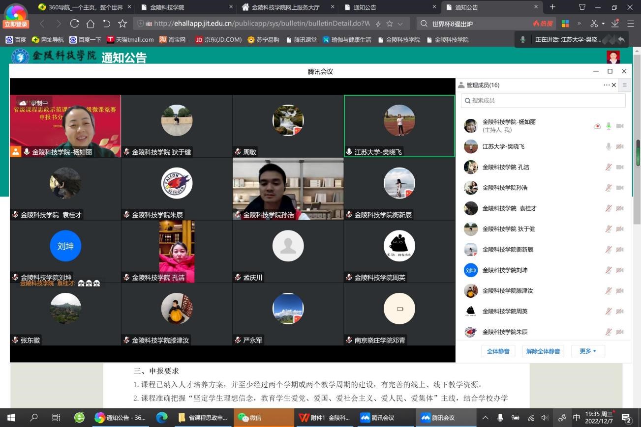 2022年12月7日晚上7:30-8:40,我校yl88858永利集团开展了大学体育课程思政建设虚拟教研室线上学习交流活动。会上虚拟教研室负责人杨如丽老师分享了省级课程思政示范课程申报书的一些填写经验和注意事项;南京财经大学yl88858永利集团严永军老师分享了自己的课程思政示范课程建设项目的申报书;最后南京林业大学万益老师分享了省级微课竞赛申报书。就各类申报书材料进行解读交流;并对我校即将参加校级课程思政示范课程的老师在申报上做了辅导。对参会的年轻教师起到了很好的指导与启发作用,得到了大家认可。为下一步虚拟教研室建设工作起到了很好的示范效果。