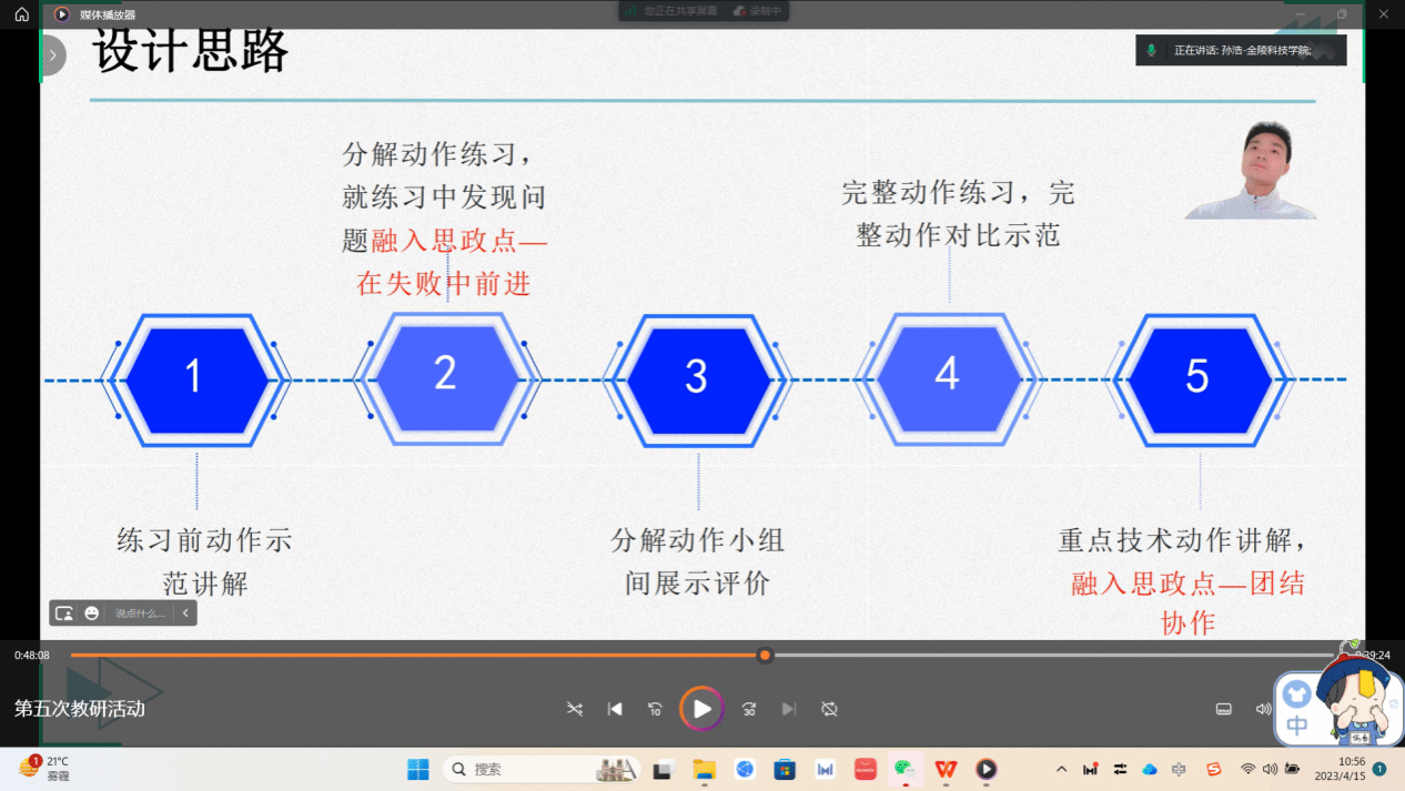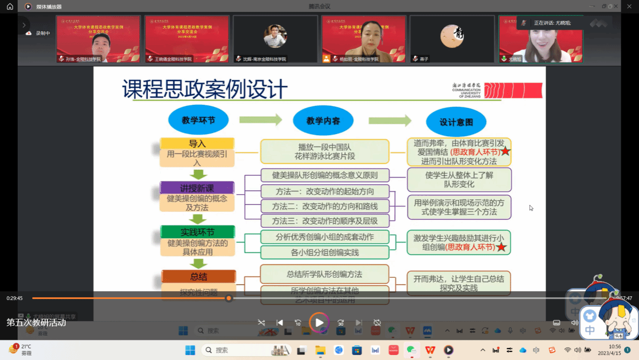 4月14日我校大学体育课程思政虚拟教研室开展了第五次线上教研活动。本次的活动以体育课程思政建设为主题,以虚拟教研室建设为载体,利用超星的数字化虚拟教研室平台,将来自全国各地的100多名老师聚在一起开展体育课程思政案例分享交流会。