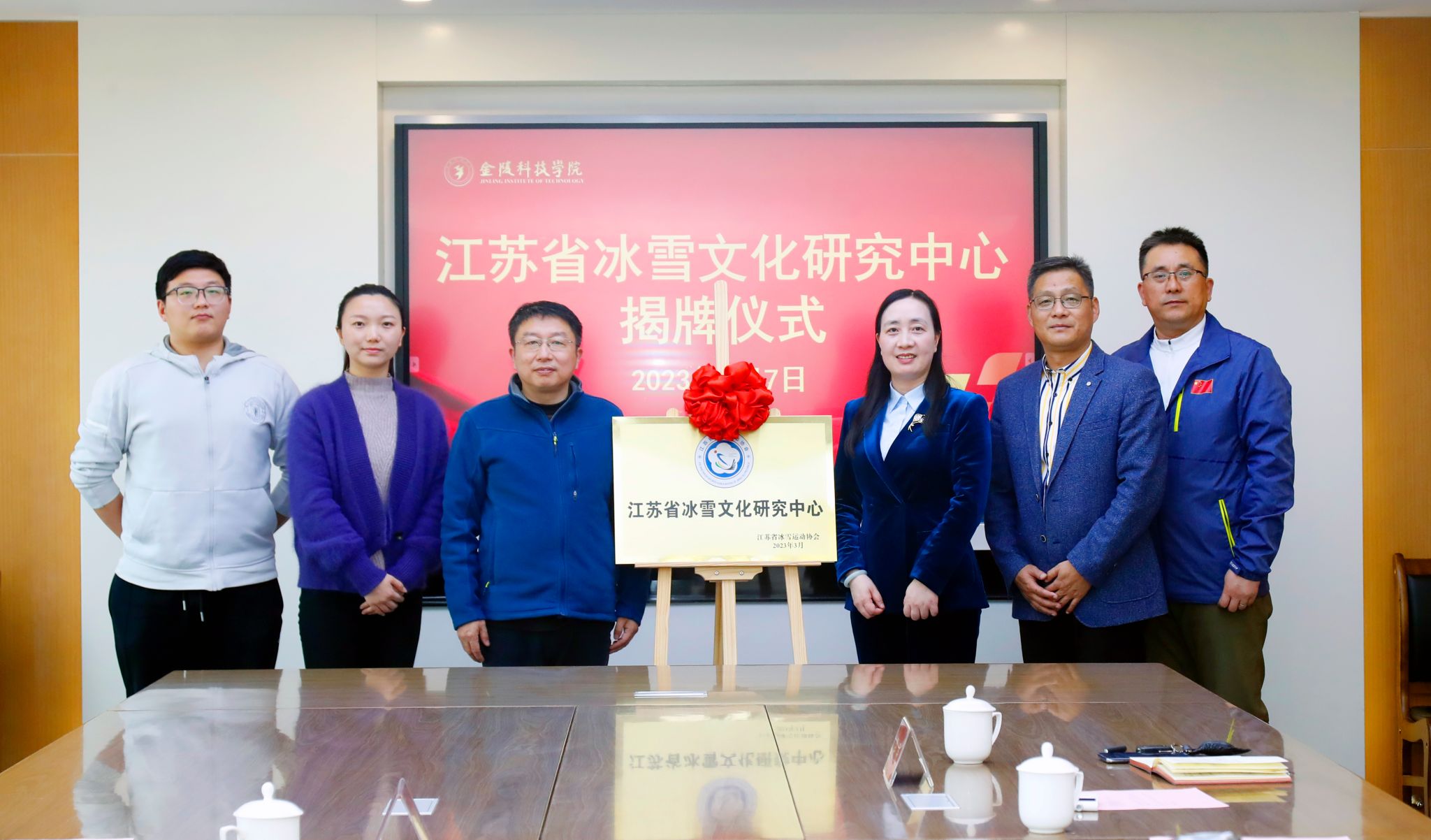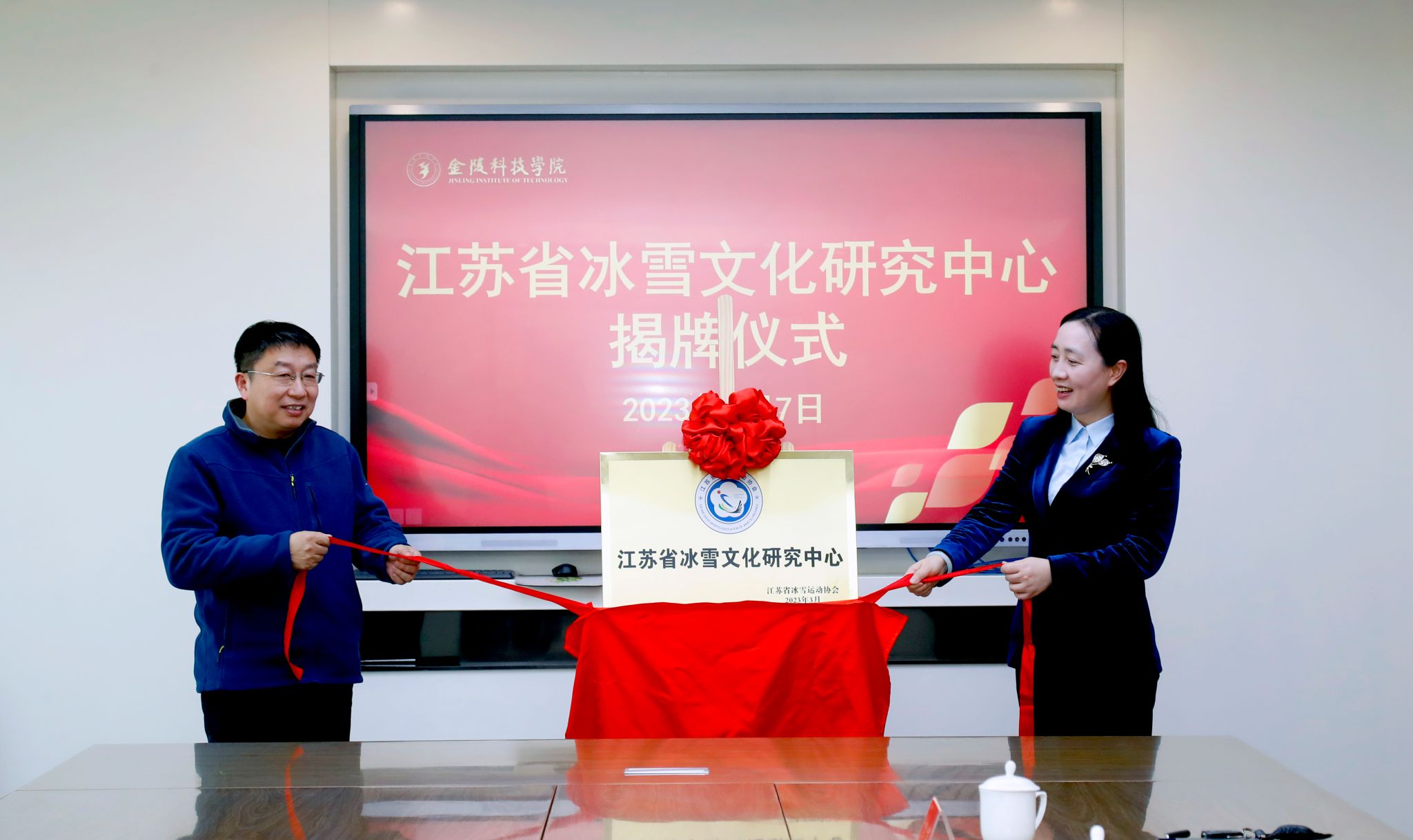 最后顾晓燕副校长与朱晓军主任共同为“江苏省冰雪文化研究中心”揭牌。