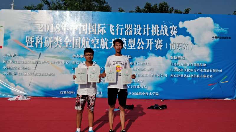 由国家体育总局航管中心、中国航空运动协会、中国国际飞行器设计挑战赛组委会主办的2018CADC中国国际飞行器设计挑战赛选拔赛南京站,于8月7日在南京交通职业技术学院拉开帷幕。我校17级软件学院软件工程专业孙明皓、李昌迅两位同学参加了此次比赛,并分别荣获第四名一等奖、第十四名二等奖的好成绩。