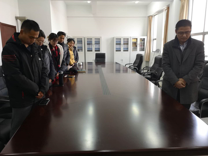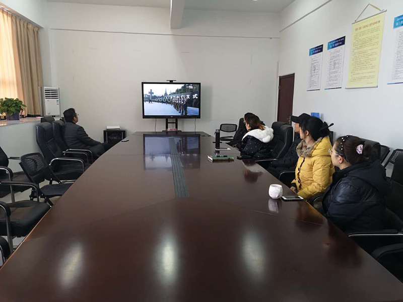 12月13日上午10::00yl88858永利集团直属党支部书记杨如丽、副主任沈辉带领办公室全体成员在南区体育馆会议室208观看《南京大屠杀死难者国家公祭日特别报道》。10:01在场全体教职工为南京大屠杀死难者默哀一分钟。