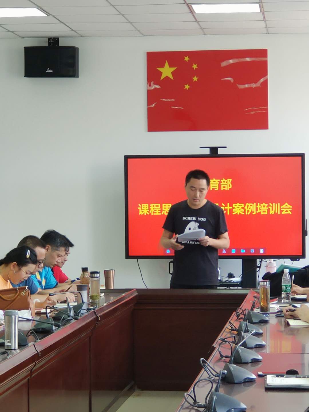 为贯彻习近平总书记在全国教育大会和高校思想政治工作会议上的重要讲话精神,全面落实《高等学校课程思政建设指导纲要》,根据《85588永利集团“课程思政”建设的实施方案》,2020年9月4日下午,yl88858永利集团在体育馆209会议室举办课程思政教学设计案例培训会,对课程思政建设工作做了整体设计和全面部署。培训会由yl88858永利集团课程思政工作坊负责人、第一教研室主任周国海老师从背景、学情分析、教学目标设置、教学内容选择、教学方式与手段、设计思路与教学流程、课后总结与反思这七个方面给大家介绍了课程思政教学设计要点,分享了自己做教学案例的经验和做法。第二教研室主任袁桂才老师根据yl88858永利集团课程思政建设的要求,详细的给大家介绍体育课程教学进度表的变更,让课程思政元素融入教学进度表中体现出来,并备注实施方式,让教师课程思政融入课堂教学思路更清晰。