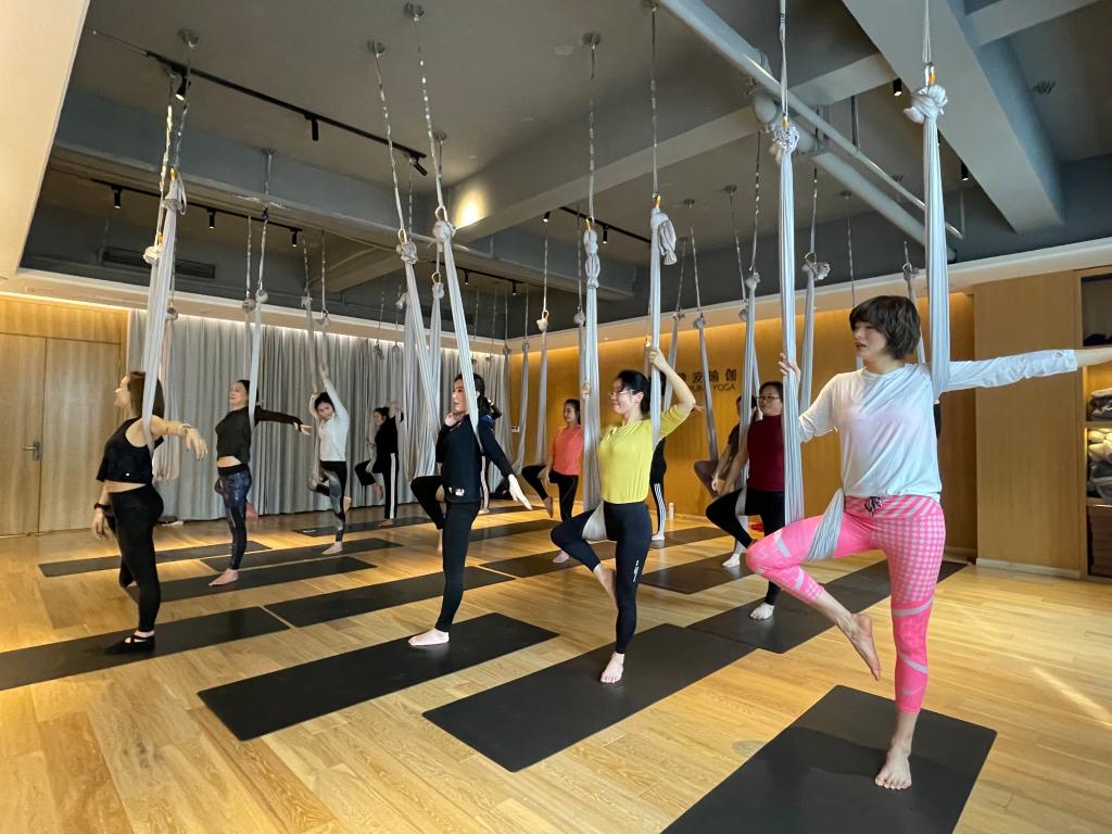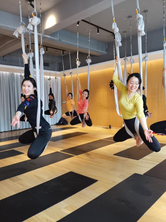 各位辛苦耕耘在教学一线的“女主播”们,终于齐聚线下。换上瑜伽服来体验空中瑜伽这不一样的锻炼项目。在舒展身体热身后,开始跟着瑜伽教练做优美的体式。大家互相帮助完成动作,享受漂浮半空的乐趣和彻底的放松身心。好玩又刺激,轻松体验高难度的瑜伽动作。运动后大家坐在一起交流放松。整个过程充满欢声笑语。