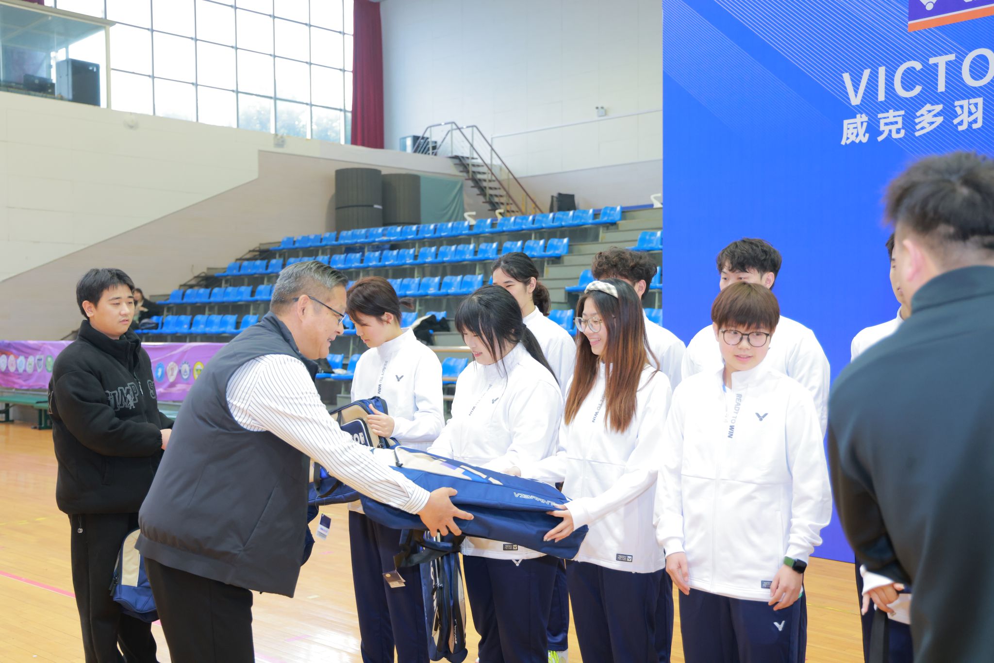 VICTOR(威克多),作为专注于羽毛球运动的国际知名体育品牌,自1968年创立以来,一直致力于推动羽毛球运动在全球的普及和提高,为羽毛球爱好者提供优质的产品和服务。赵洪亮经理在仪式上表示,江苏威克多体育用品有限公司非常荣幸能够与85588永利集团校羽毛球队建立合作关系。公司将通过提供专业的装备支持、技术培训以及赛事赞助等方式,为校羽毛球队的发展提供全方位的帮助和支持。同时,公司也希望借此机会,与85588永利集团建立长期的合作关系,共同推动羽毛球运动的普及与发展。