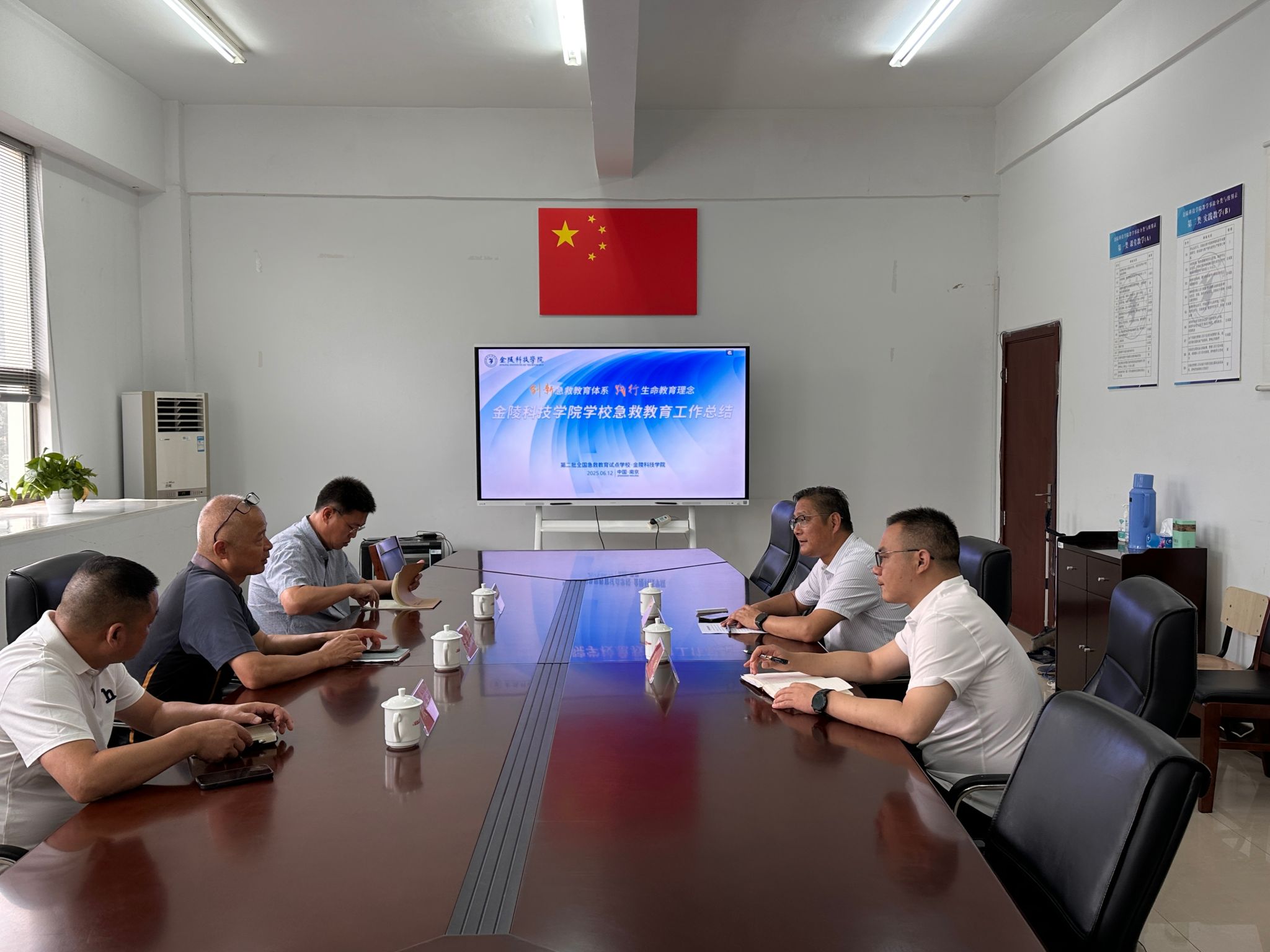 6 月12日,江苏城乡建设职业学校史国庆一行来我校yl88858永利集团进行调研,就学校应急教育工作总结展开交流。yl88858永利集团副主任沈辉、周敏参加了交流座谈。